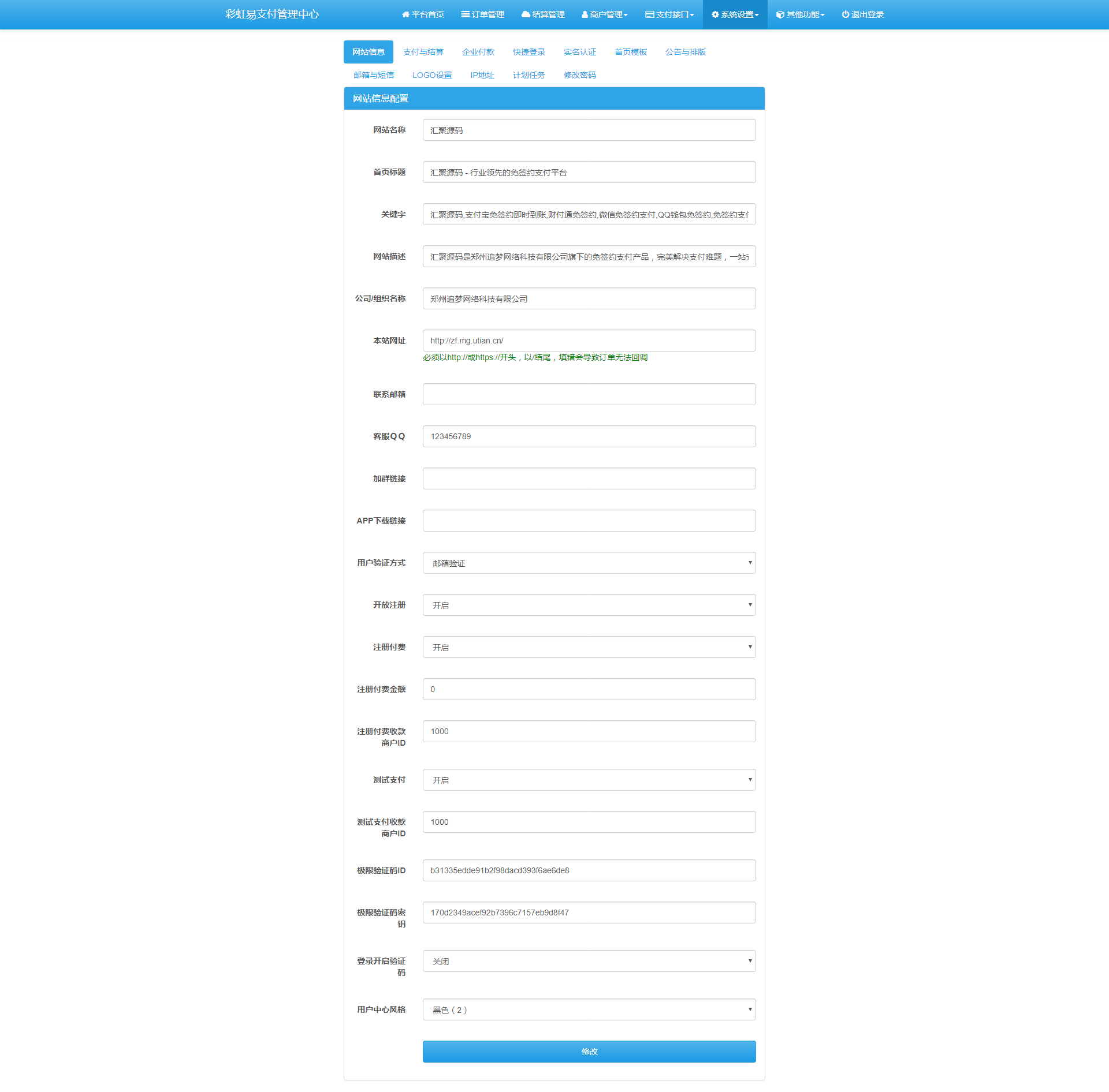 这是老版彩虹易支付作者二开版本,在原版增加了很多新功能:API退款,轮训支付,网银支付,京东支付,实名认证等还有10套首页模板8套个人中心模板