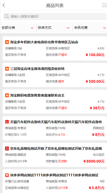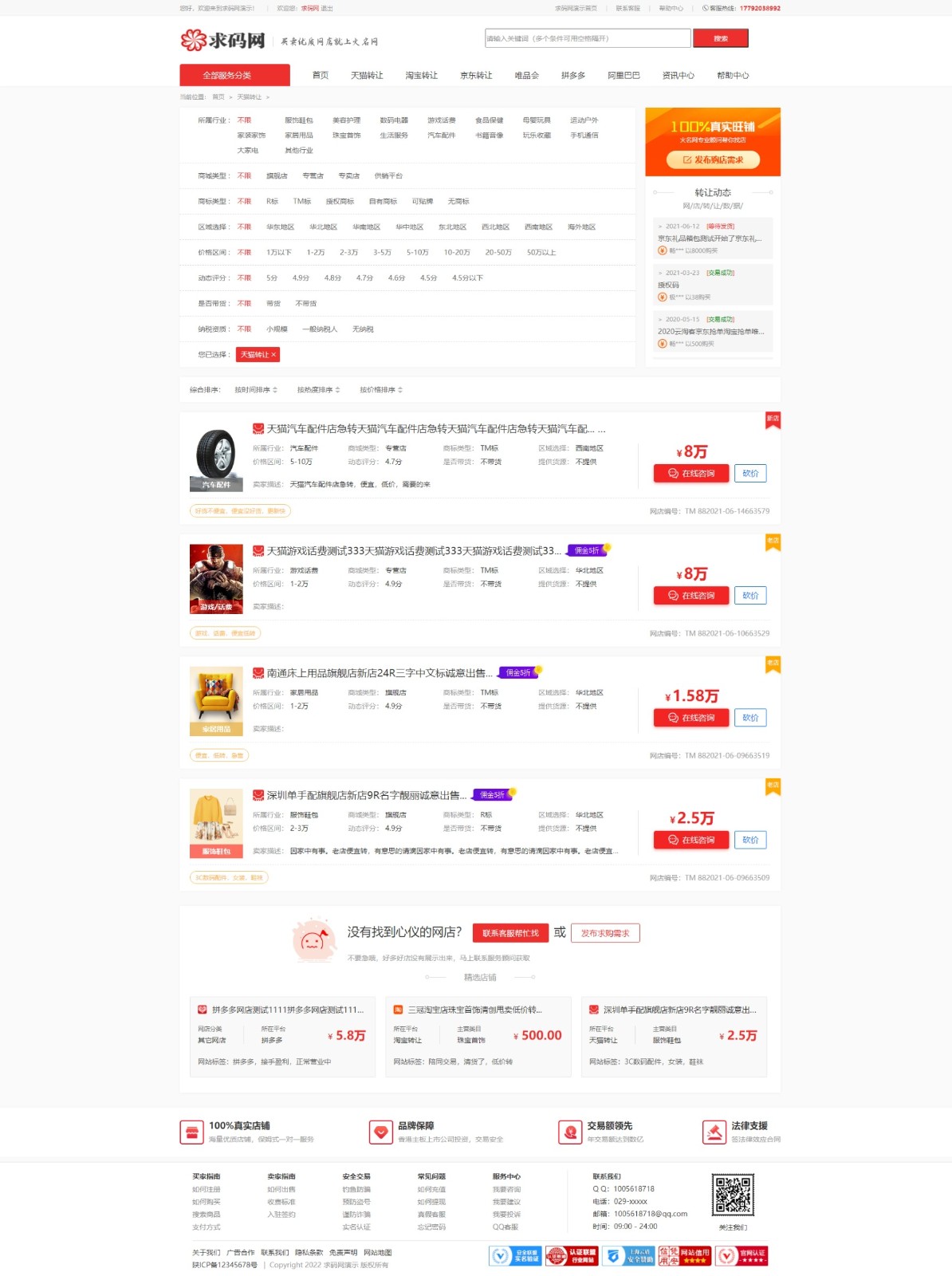 2021年新版仿某火名网淘宝天猫京东店铺转让交易平台淘宝京东拼多多唯品会网店铺交易系统