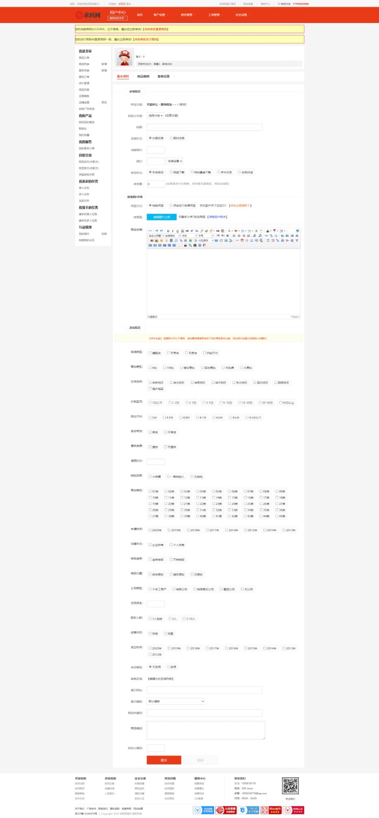 2.除演示站外的所有功能和样式均可修改(仅友价内核加密,其它文件开源,不影响二次开发)。