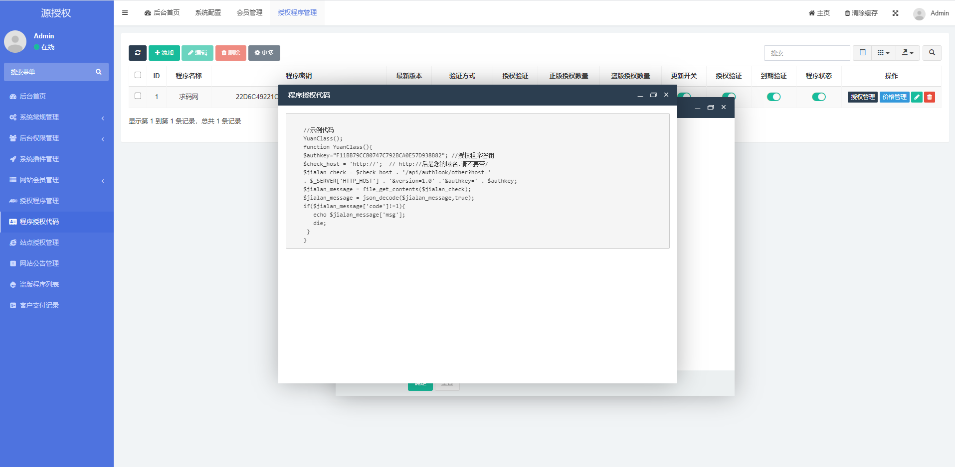 支持多程序在线自助授权