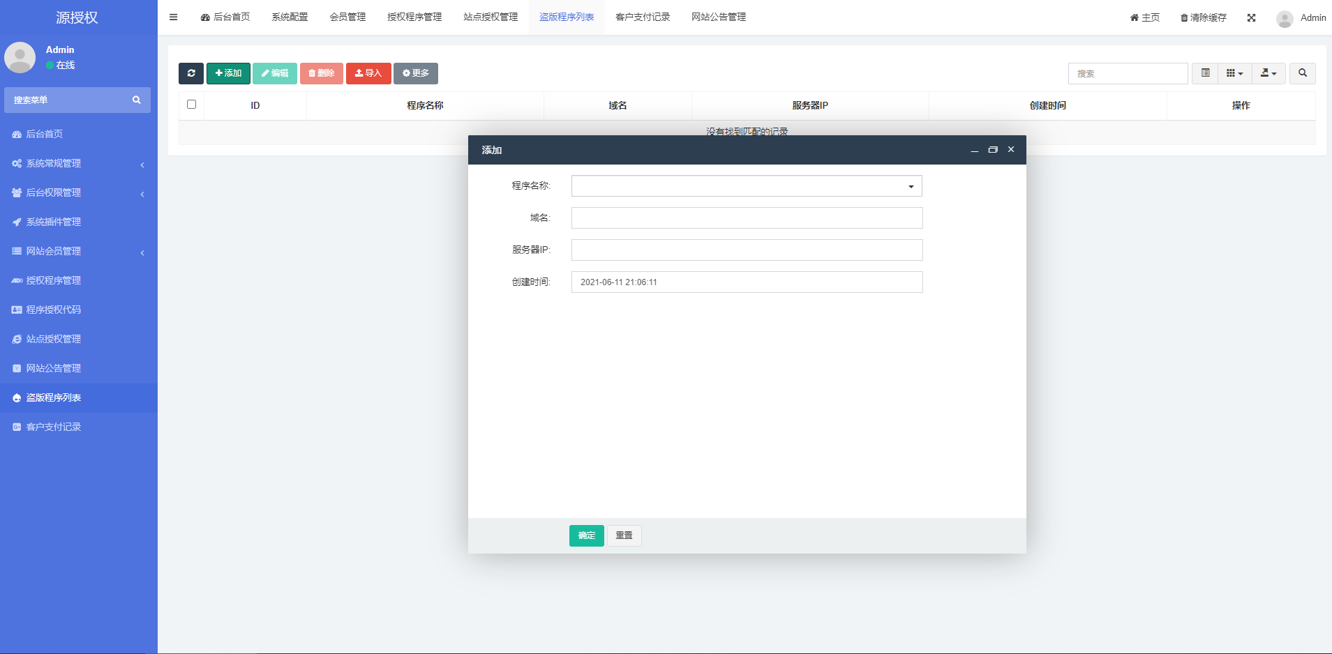 2021全新架构的授权系统.采用ThinkPHP 5.0开发,内置各种强大的功能,邮件管理,云短信、阿里云短信等.后台强大简洁,使用方便快捷,支付模块集成易支付功能,前台支持自助购买和1作管理授权!