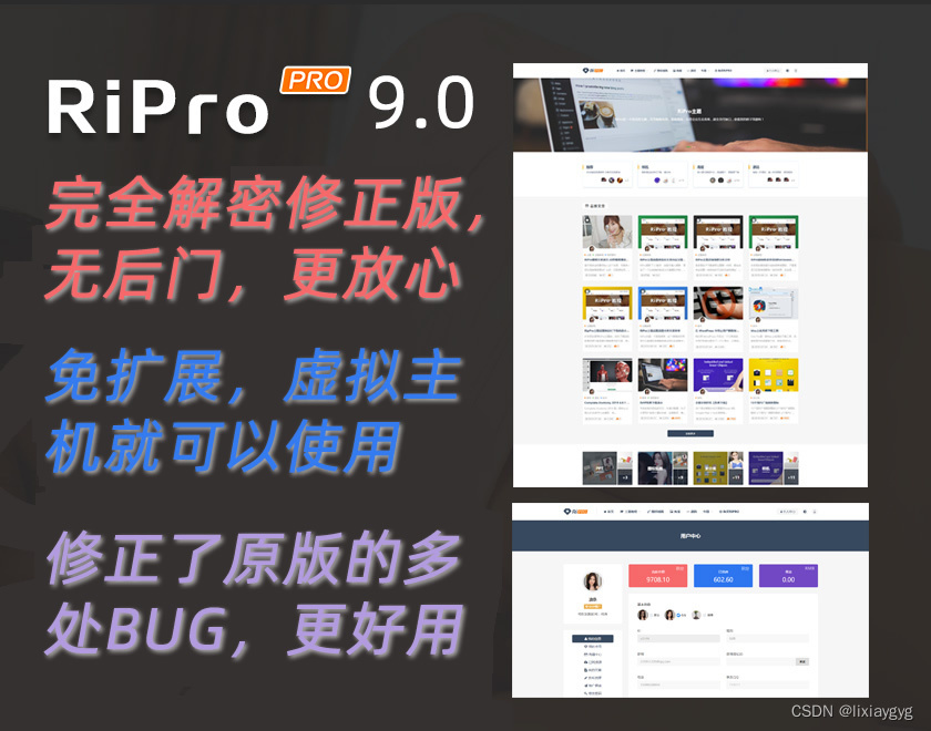 本站这个ripro最大的优点就是全解密,无后门,无需扩展,支持虚拟主机。