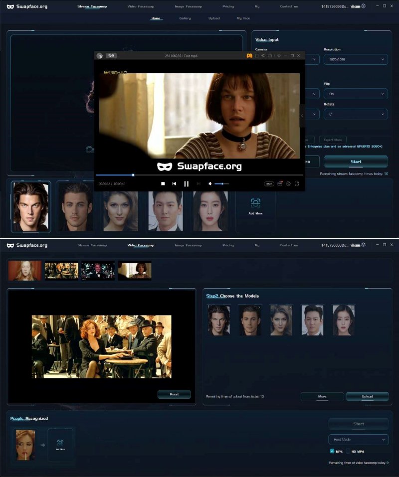 三、实时处理 Swapface支持实时处理视频和图片,让人脸交换不再是时间消耗的代名词。在我们的平台上,您能即刻看到每一个微妙变化,享受无缝的创作流程。