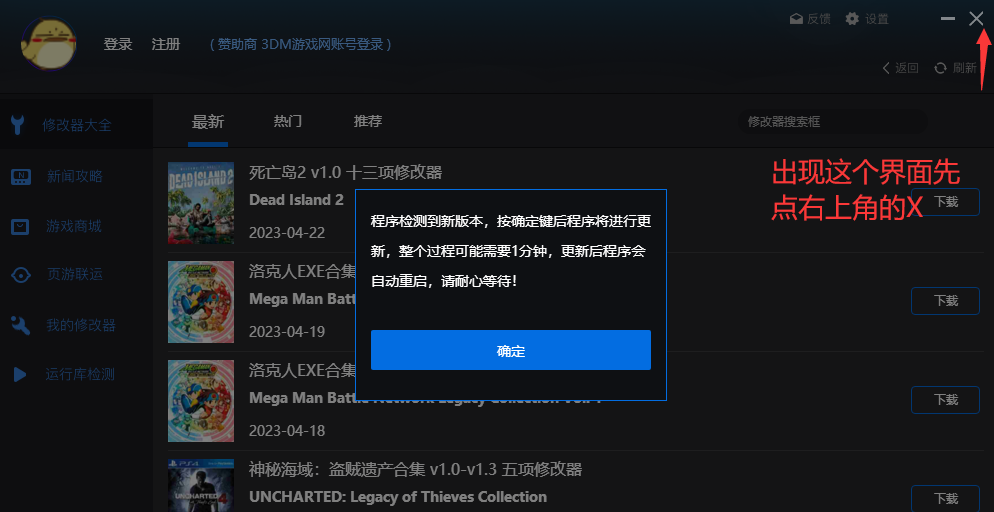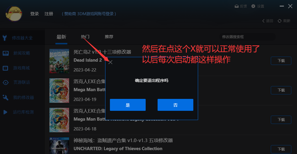 点完以后会出现“确定要退出程序吗”我们点击左上角的X即可正常使用